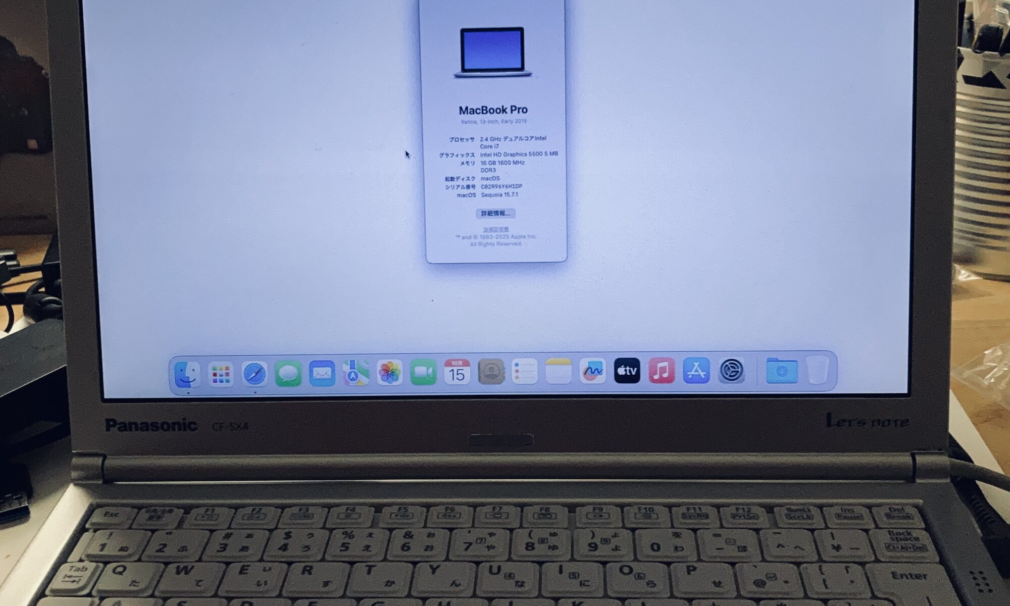 CF-SX4のmacOSをBigSur(11.0) → Sequoia(15.0) にアップグレードさせました。一気に4世代もアップしました。