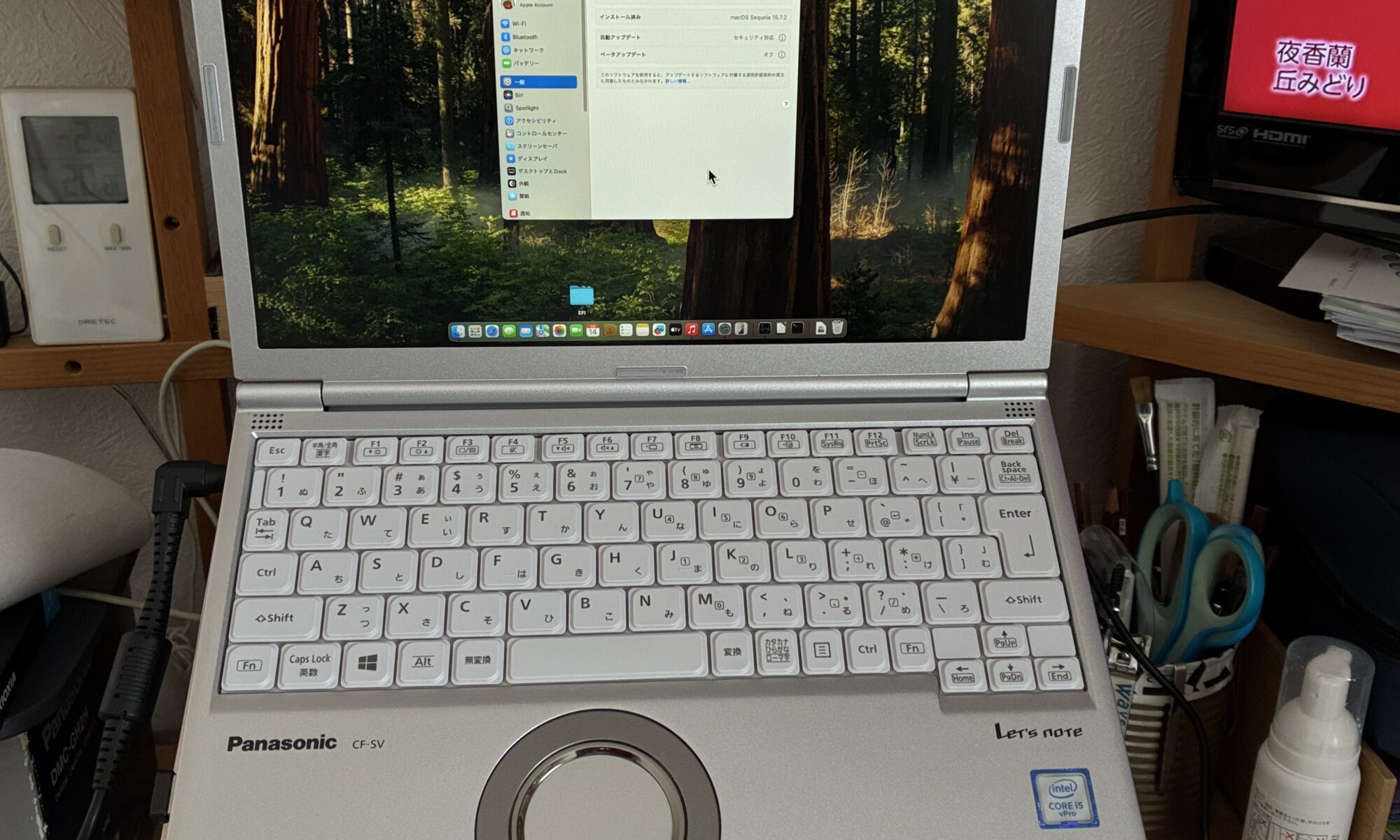A機は、ジャンクでSSDが付いていないだけでSSDを付けたら簡単に動くと思っていました。ところが、CPU温度が上がっても冷却ファンが低速のままで熱暴走する問題を抱えていました。それを掃除機で強制排気を行いながら256GBのSSDにWindows11とmacOSをインストールしました。macOS 15.7.2は、完璧にインストール出来ました。
